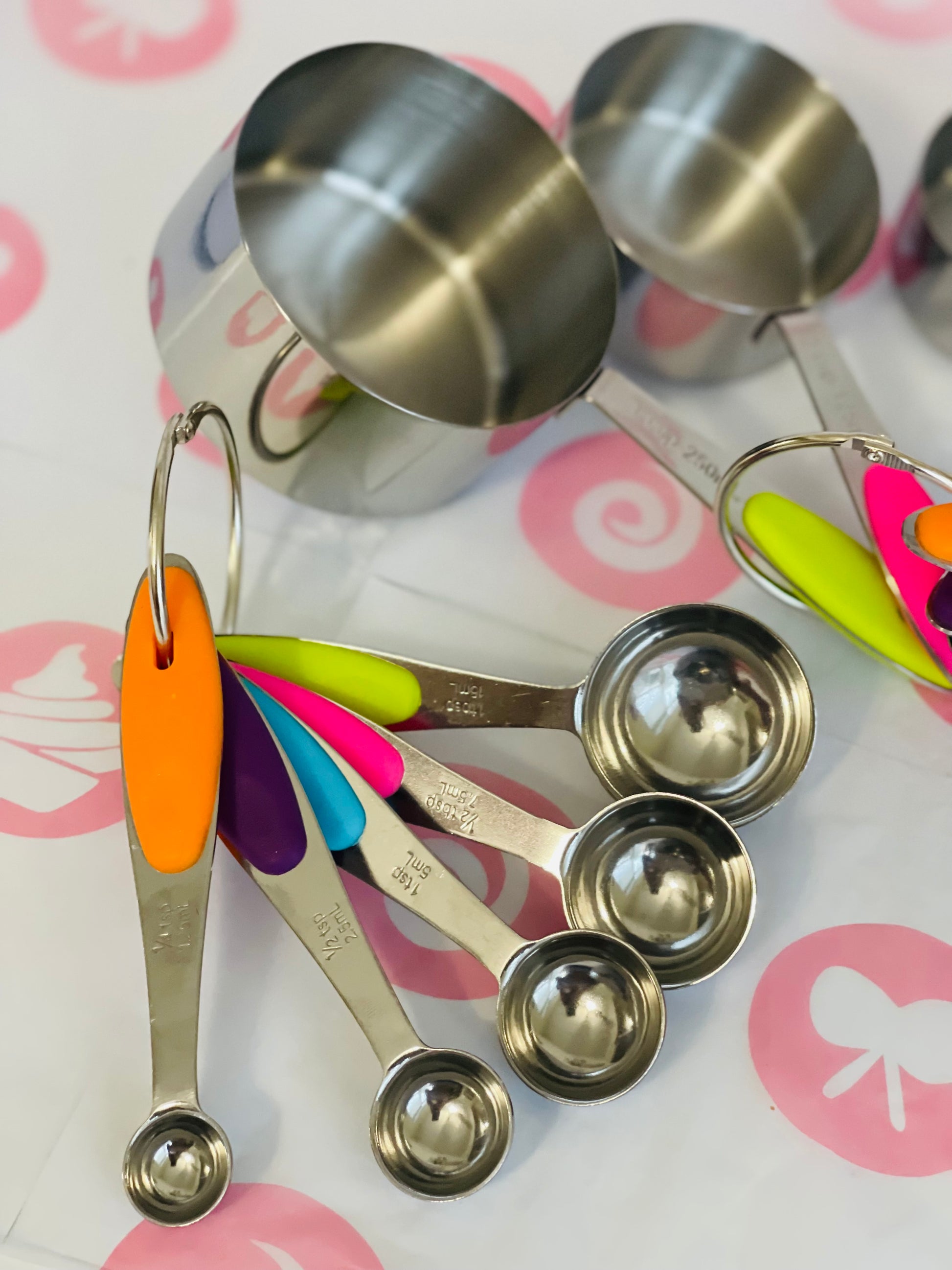 - Set completo de medidores: cucharas y tazas en diferentes tamaños.
